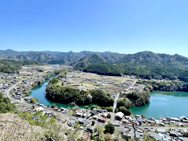 遠見山は岩肌が剥き出しになった岩山で登り応えがあり、町の中でも人気の山の一つです。頂上には下麻生城跡があったとされており、かつての城跡や城池などを見ることができます。また、見晴らし岩から川辺町を一望する眺めは「岐阜のグランドキャニオン」とも呼ばれています。